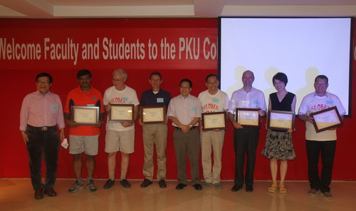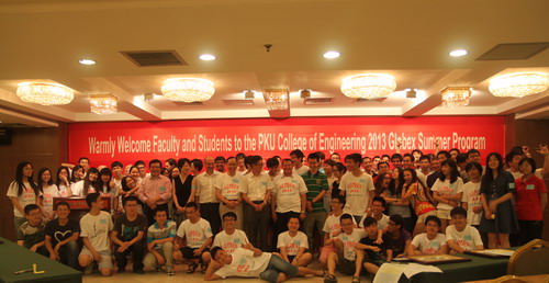 Moderated by Assistant Dean Pingchou Han, the welcome ceremony for the Globex Summer 2013 was held in Yingjie Overseas Exchange Center at Peking University recently. Dean of the College of Engineering Dongxiao Zhang and Associate Dean Steven Feng Chen joined with the faculty and students of the program.