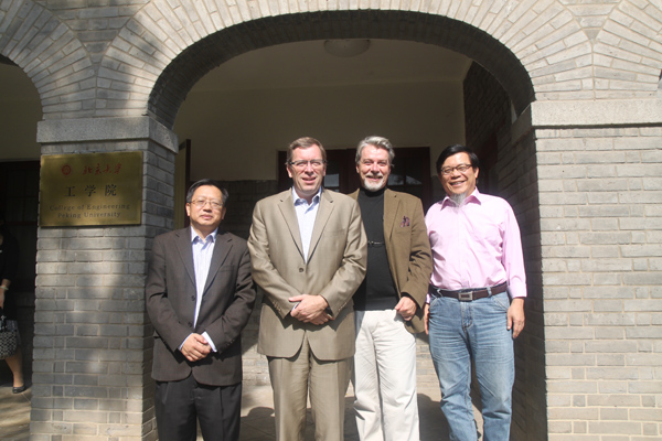 On October 12, Frank Pacard, vice president for academic affairs and research, and Christophe de Beauvais, vice president for external relations, both from ?cole Polytechnique, France visited the College of Engineering to discuss cooperation possibilities in scientific research and student exchange programs. They were warmly received by Dongxiao Zhang, dean of the College of Engineering, and Pingchou Han, assistant dean for international relations.