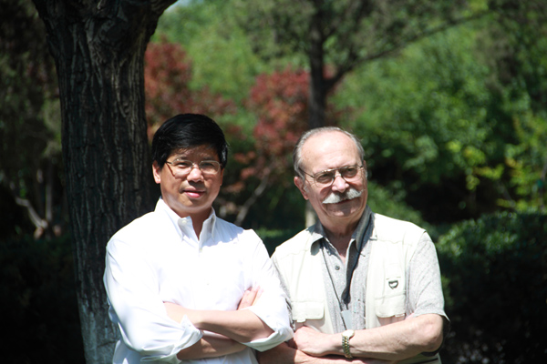 Dr. Chunmiao Zheng with Dr. Jozsef Toth, the first recipient of O.E. Meinzer Award (1965). Photo taken in Beijing, China in June 2013.