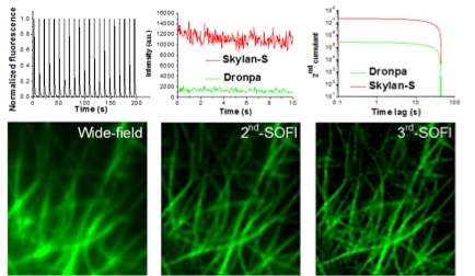 Fig. 1 Skylan-S has greater fluorescence intensity and fluctuation range than Dronpa, making it more suitable for high-order SOFI super-resolution imaging.