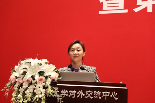 Ms. Yongmei Li makes a work report of the Alumni Association
