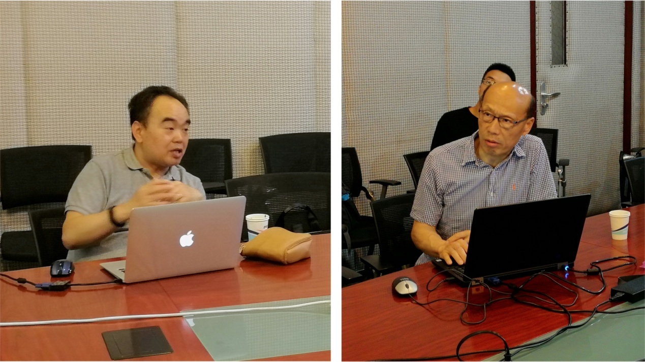 Prof. Jiezhi Wu discussing with Prof. Tianshu Liu