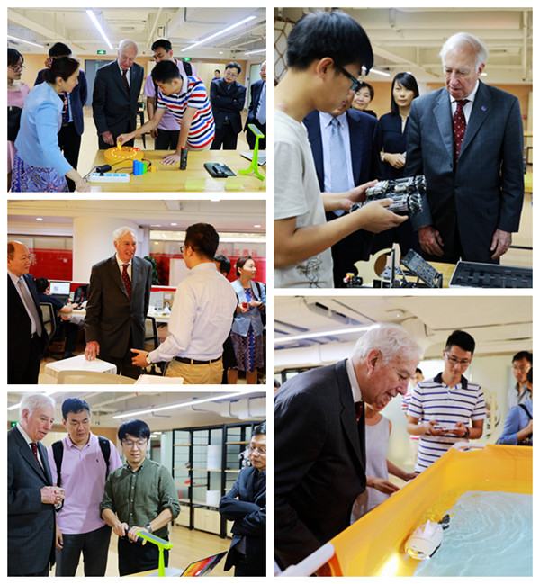 Mote observed several outstanding projects developed by students from the College of Engineering, such as a “Quality Technology-Intelligent air cleaner”, “Di Da musical blocks”, “Interdisciplinary applications of flexible solar energy”, and “Robosea underwater robot fish ”. He listened carefully to team reports, watched their practical demonstrations and communicated with the team members. Mote spoke highly of their works and the center, calling for more applications of technological innovation from the COEers.