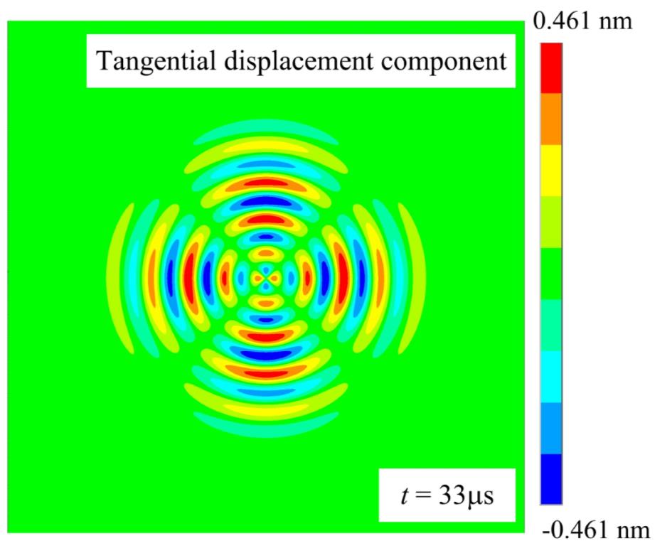 Simulated wavefield of the SH0 wave excited by a d24 face-shear piezoelectric wafer