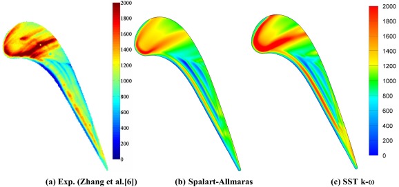 Fig. 4. CFD validation – heat transfer coefficient on the blade tip.