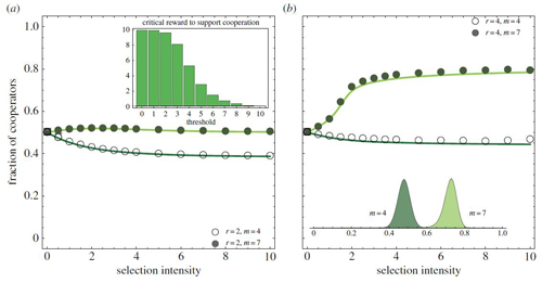 (Du, J., Wu, B., Altrock, P. M., Wang L. 2014 Aspiration dynamics of multiplayer games in finite populations. J. R. Soc. Interface 11: 20140077. http://dx.doi.org/10.1098/rsif.2014.0077)