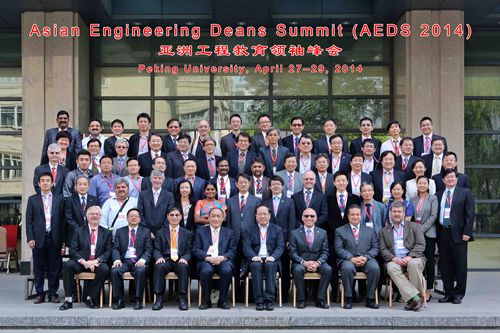 Organized by the College of Engineering, Peking University, the 2014 Asian Engineering Deans Summit (AEDS) was grandly held at Zhongguanyuan Global Village of Peking University on April 28-29. The mission of the conference is to serve as a network for engineering deans to leverage their collective strengths for the advancement of engineering education, research and service to the Asian community. The theme of the two-day conference is New Challenges and Opportunities for Asian Engineering Education and Research. Over 60 engineering deans and university presidents from Asian countries including Singapore, Japan, Korea, India, China, as well as from other regions including Australia, U.S., and France attended the summit. Schneider Electrics, Tri-Star, MathWorks, Tobefar, and Lenovo sponsored the event.