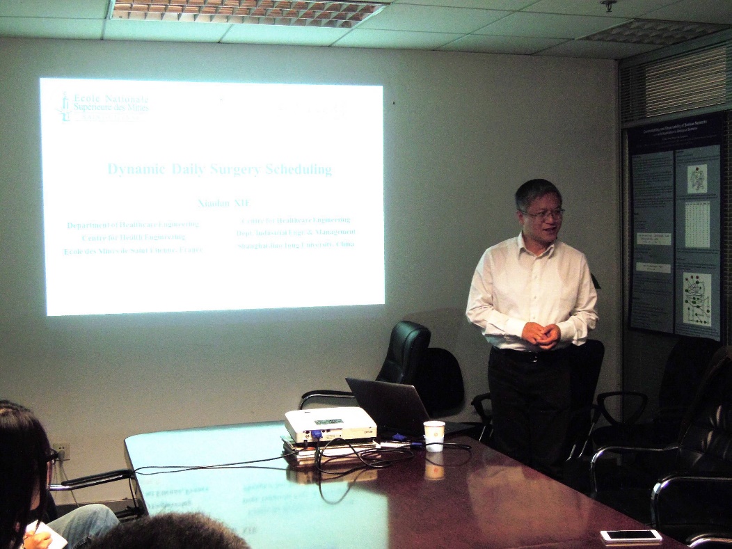 In this talk, Dr. Xiaolan xie focused on daily surgery scheduling in a multi-OR setting where OR stands for Operating Rooms with random surgery durations.Dr.Xie first addressed the dynamic assignment of a given set of surgeries with planned surgeon arrival times also called appointment times. Surgeries are assigned dynamically to ORs at surgery completion events. The goal was to minimize the total expected cost incurred by surgeon waiting, OR idling, and OR overtime. He first formulated the problem as a multi-stage stochastic programming model. An efficient algorithm was then proposed by combining a two-stage stochastic programming approximation and some look-ahead strategies. A perfect information-based lower bound of the optimal expected cost was given to evaluate the optimality gap of the dynamic assignment strategy. Numerical results showed that the dynamic scheduling and optimization with the proposed approach significantly improved the performance of static scheduling and First Come First Serve (FCFS) strategy.