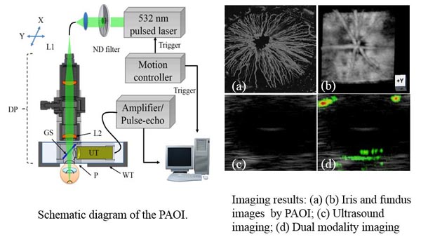 Recently, a novel ocular imaging system was developed by Prof. Changhui Li’s research group in College of Engineering (COE), Peking University. They successfully used this system to acquire high resolution dual modality murine ocular imaging in vivo. The research paper was published in Optics Letters entitled “High-resolution dual-modality photoacoustic ocular imaging”. The corresponding author is Prof. Changhui Li. The first author is Ning Wu, a PhD student in COE, Peking University. (N. Wu, S. Ye, Q. Ren, and C. Li. http://www.opticsinfobase.org/ol/fulltext.cfm?uri=ol-39-8-2451&id=282971).
