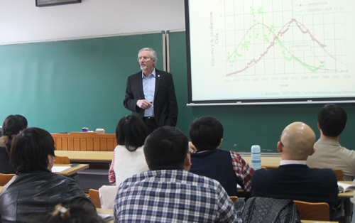 The attending students showed great interest in Horne’s talk, and raised many questions such as the pros and cons of the use of the fracking technology and oil sand, the environmental impact of shale oil production and the potential of electric cars, and Prof. Horne gave detailed answers.