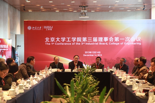 The 1st meeting of the 3rd Industrial Board of the College of Engineering (COE), Peking University (PKU) was successfully held at PKU on December 14. Over twenty board members and many COE professors gathered together to jointly discuss COE’s development issues. Prof. Shanlu Zhu, Chair of Council of PKU, Prof. Shiyi Chen, Vice President of PKU and Dr. Ya Deng, General Secretary of PKU Education Foundation participated in the meeting. The conference was presided over by Prof. Dongxiao Zhang, Dean of COE.