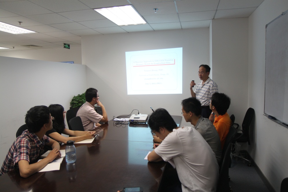 On July 5, University of South Florida Associate Professor Yangxin Huang gave a lecture about dynamic systems models to Department of Industrial Engineering and Management (IEM) faculty and students. Professor Leyuan Shi, department chair of IEM and many students attended the lecture.