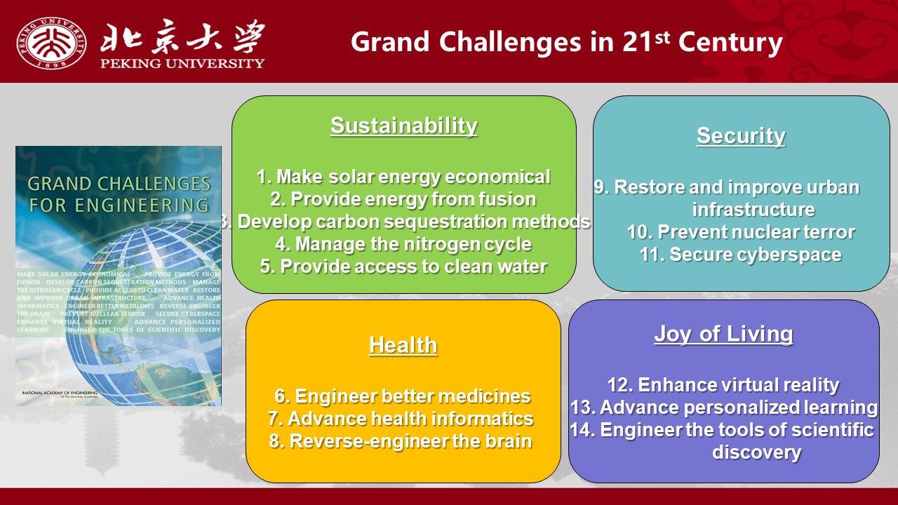 After PKU and DeTao’s collaboration in offering brand speeches, public elective courses, MOOCs courses and master program courses for many years, the two parties reached a new agreement in supporting the GCSP at PKU. GCSP was initiated as a new education paradigm by the NAE to prepare engineers to cope with the Grand Challenges for Engineering in the 21st century, typically in the fields of sustainability, health, security and joy of living, covering 14 grand engineering challenges such as developing clean energy, improving urban infrastructure, advancing health and medical care, enhancing cyberspace security and advancing personalized learning. The GCSP has now been implemented at more than 70 engineering schools around the world.