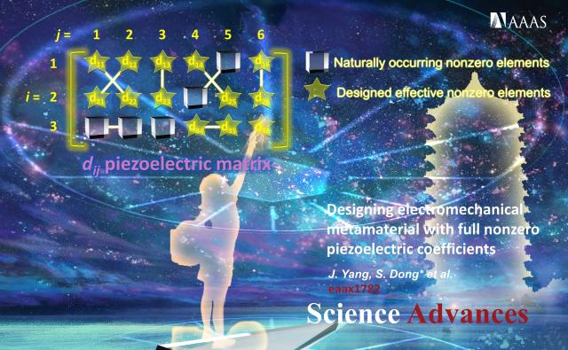 Recently, in the form of Research Article-Physical Sciences, Science Advances, a journal of Science group, reported on the unique research exploration and the important advances in this field by Prof. Shuxiang Dong’s research group in the College of Engineering at Peking University. The title of the thesis is: Designing electromechanical metamaterial with full nonzero piezoelectric coefficients (DOI: 10.1126/sciadv.aax1782).
