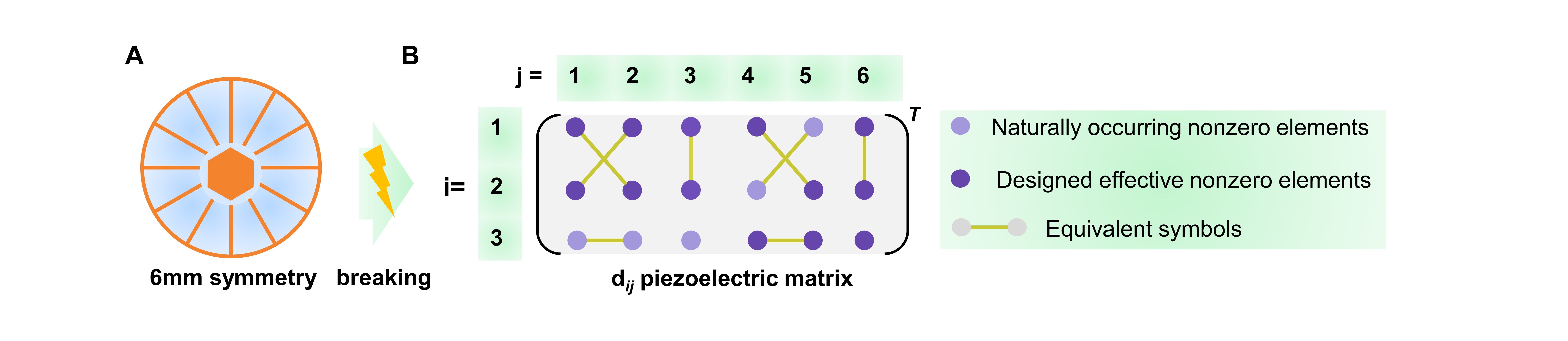 However, due to the intrinsic 6mm point group symmetry, in the piezoelectric strain matrix of natural piezoelectric ceramics (represent the ability of piezoelectric materials to convert electric field into strain output; third-order tensor; with 18 matrix elements, namely, strain coefficient dij), there are only five non-zero matrix elements. For many years, almost all researches have always focused on how to synthesize new materials and how to improve the values of five existing piezoelectric coefficients; although some scholars have begun to realize the existence of individual non-zero piezoelectric coefficient matrix elements, there is lack of a basic theoretical and systematic study. Therefore, in the fundamental theory of piezoelectricity, every important progress is very tough, which has limited further designs and development of piezoelectric devices.