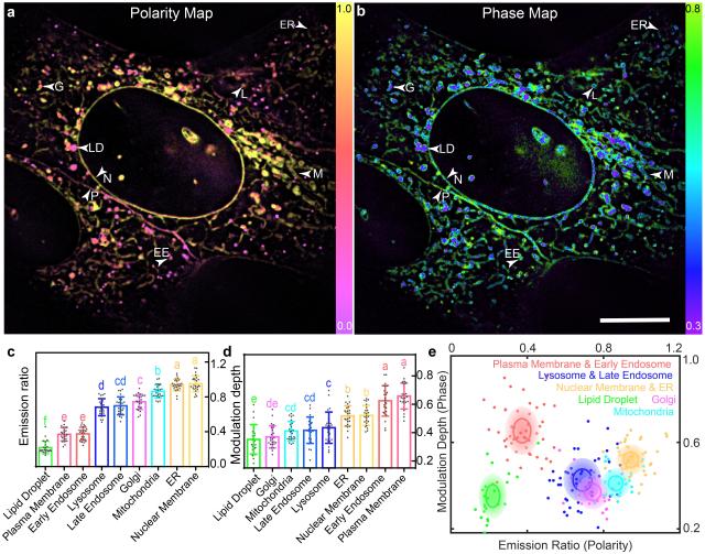 Most microscopes can only image four or fewer color channels, far less than the types of intracellular organelles. The synergistic use of membrane morphology, lipid polarity, and the lipid phase can classify more than ten types of organelles.